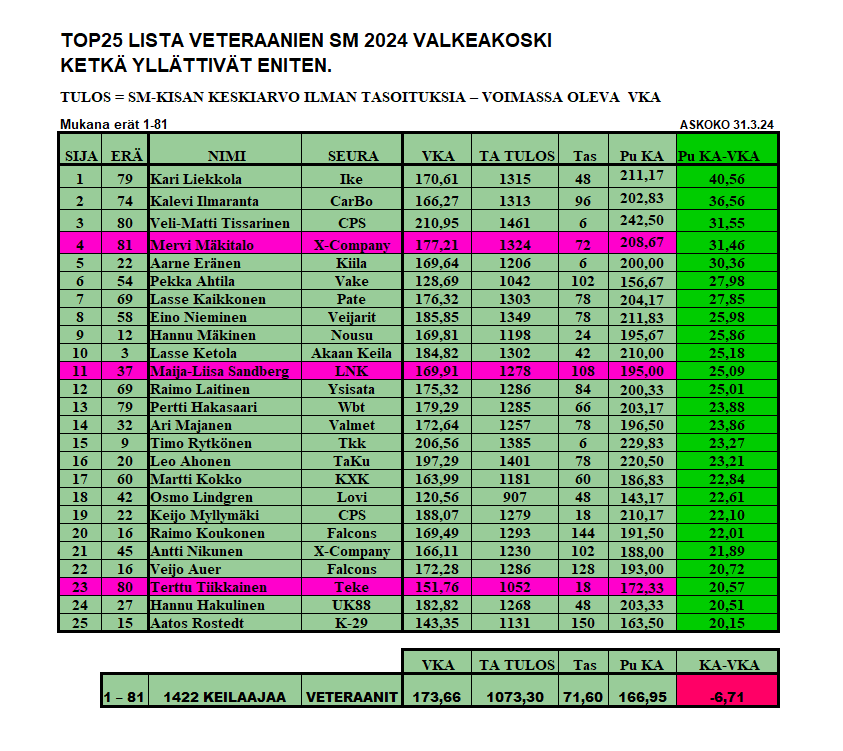 Veteraanimiesten Suomen mestaruuden voitti Kari Kuparinen. Toiseksi tuli Seppo Eskolin ja kolmanneksi Pertti Hakasaari. Tarkemmin finaalin kulusta voit lukea SKL:n uutisista tästä.